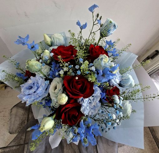 《花材》:紅玫 小飛燕 桔梗 滿天星